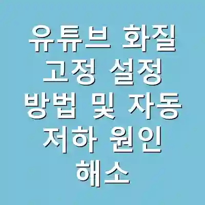 유튜브 화질 저하 원인은 인터넷 속도, 디바이스 성능, 유튜브 설정 등 여러 가지가 있습니다. 이를 해결하기 위해서는 화질을 수동으로 고정하고, 네트워크 및 디바이스 상태를 체크해야 합니다. 올바른 설정과 관리로 최상의 유튜브 시청 경험을 즐길 수 있습니다.